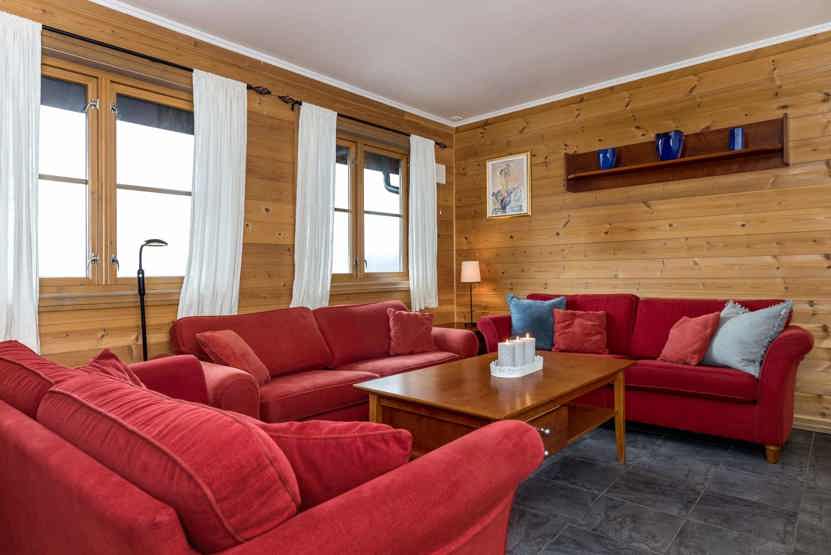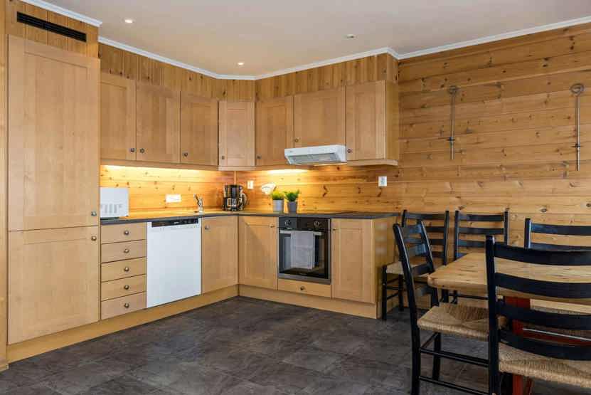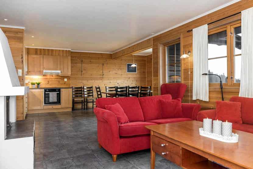 Skarsnuten 204, Lejlighed på 2. sal i 2 etager. 9+1 sengepladser, 119 m2, Opholdsstue med køkkenafdeling, pejs, TV, Lille repos med sofa. 4 soveværelser, 2 brusere, 2 WC, sauna, Skarsnuten Fjellandsby ligger i et kuperet område. Adgang til lejligheden kan variere alt efter terrænet.