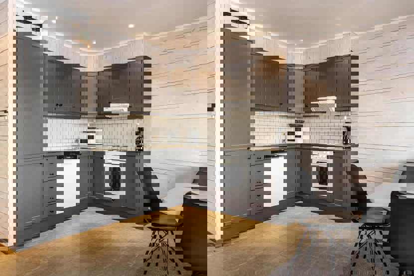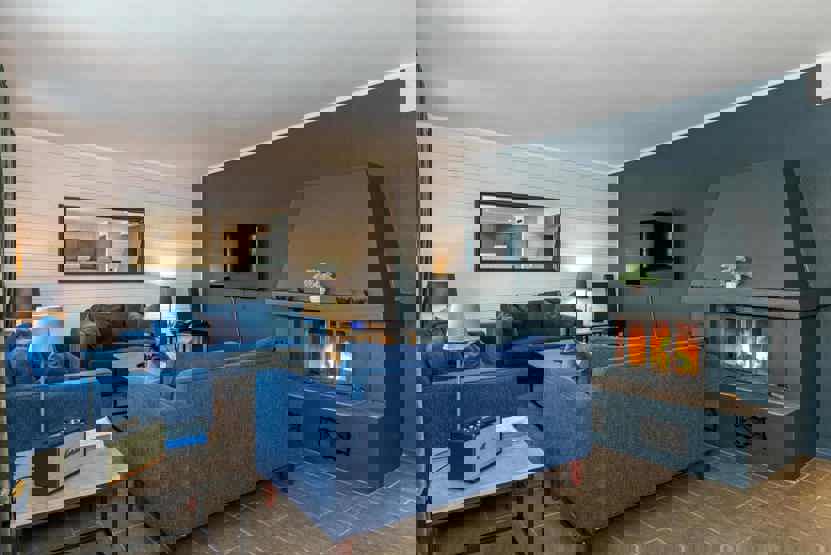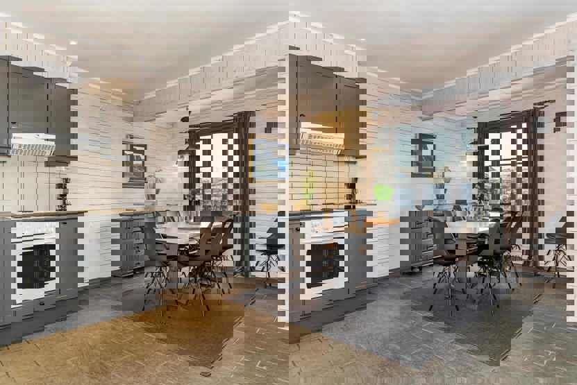 Skarsnuten 214, Lejlighed på 2. sal i 2 etager. 9+1 sengepladser, 119 m2, Opholdsstue med køkkenafdeling, pejs, TV, Lille repos med sofa. 4 soveværelser, 2 brusere, 2 WC, sauna, Skarsnuten Fjellandsby ligger i et kuperet område. Adgang til lejligheden kan variere alt efter terrænet.