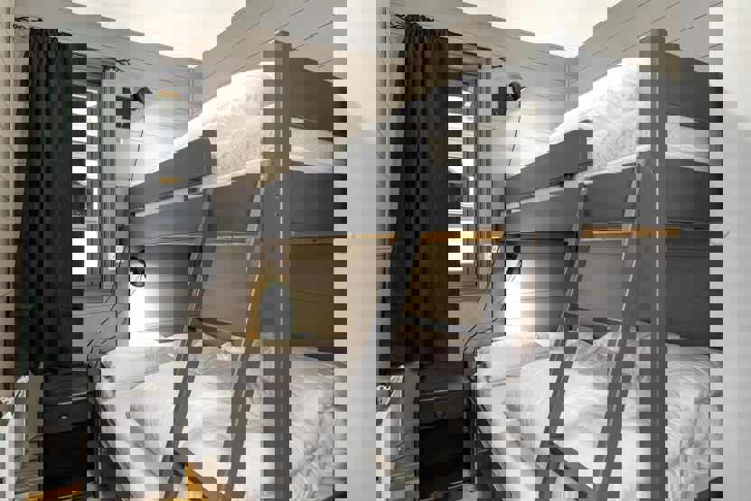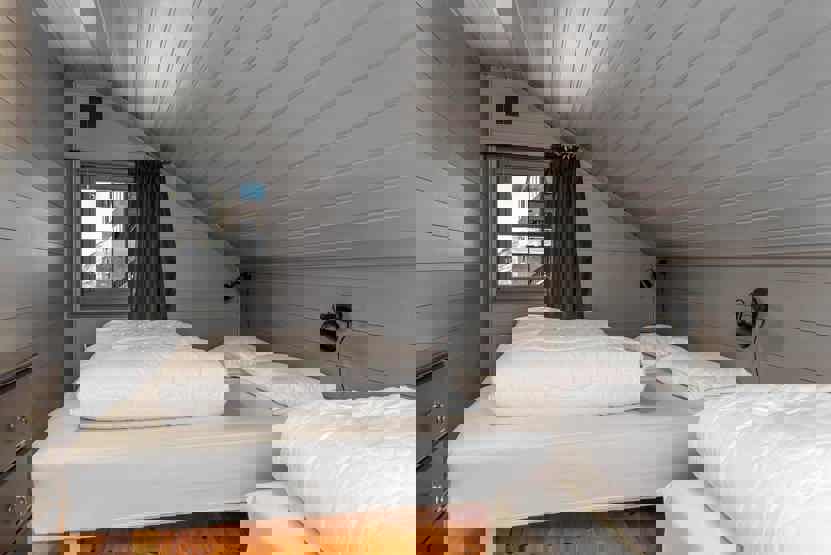 Soveværelse 1: 1 dobbeltseng. Soveværelse 2: 1 køjeseng med 120 cm bred underkøje. Soveværelse 3: 3 enkeltsenge. Soveværelse 4: 2 enkeltsenge.