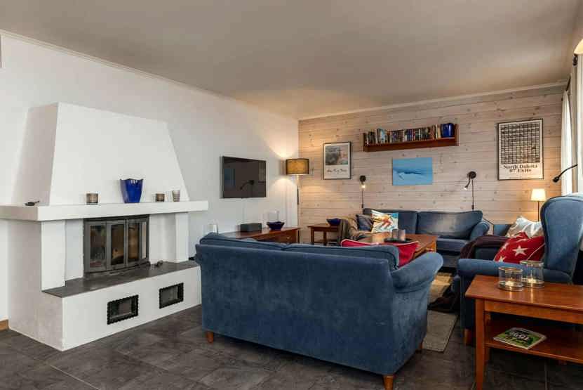 Kabel-TV, åben pejs. Skiopbevaring. Balkon (der skovles ikke sne). Ved glat føre, skal snekæder/pigdæk bruges for at undgå stop og kødannelser.