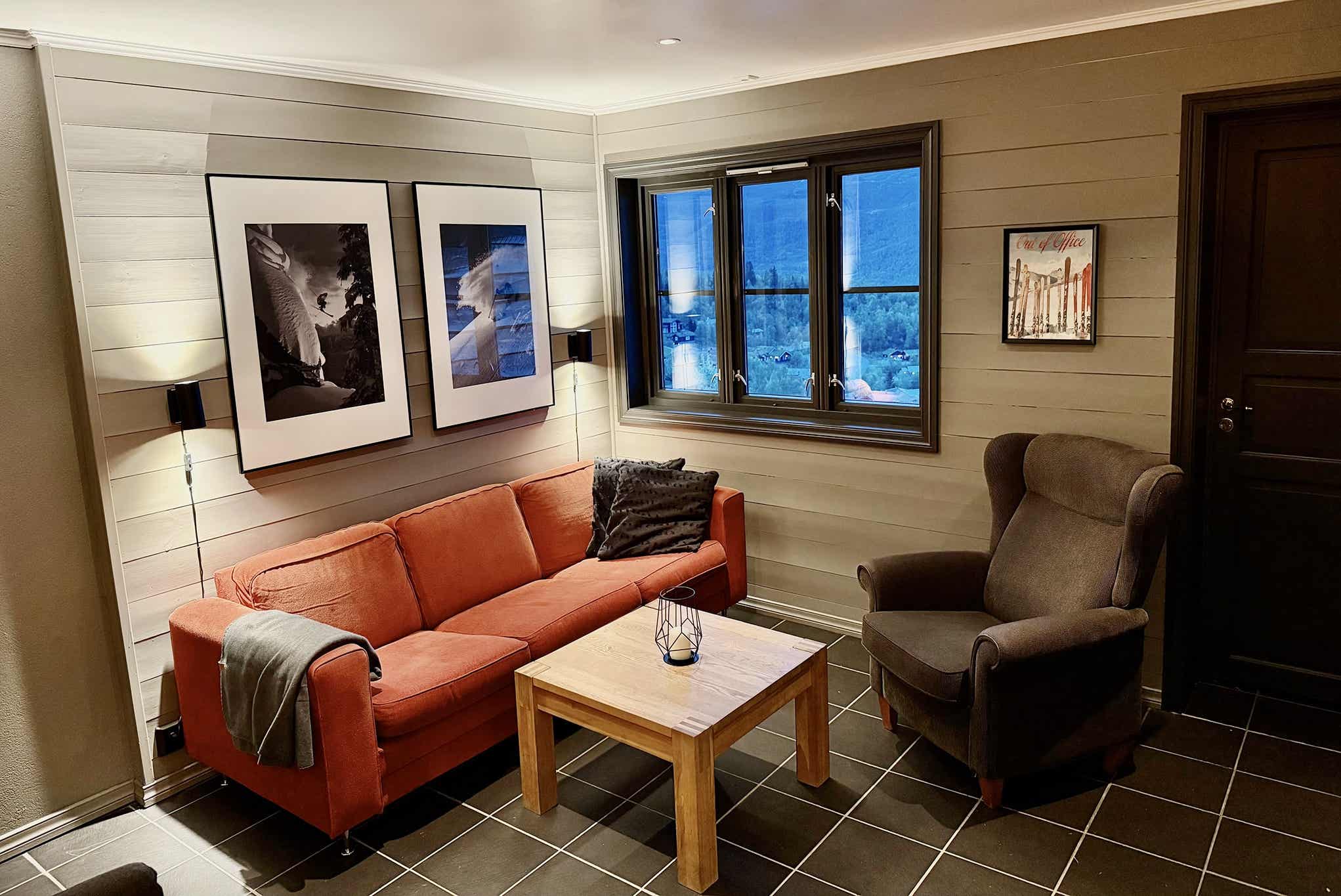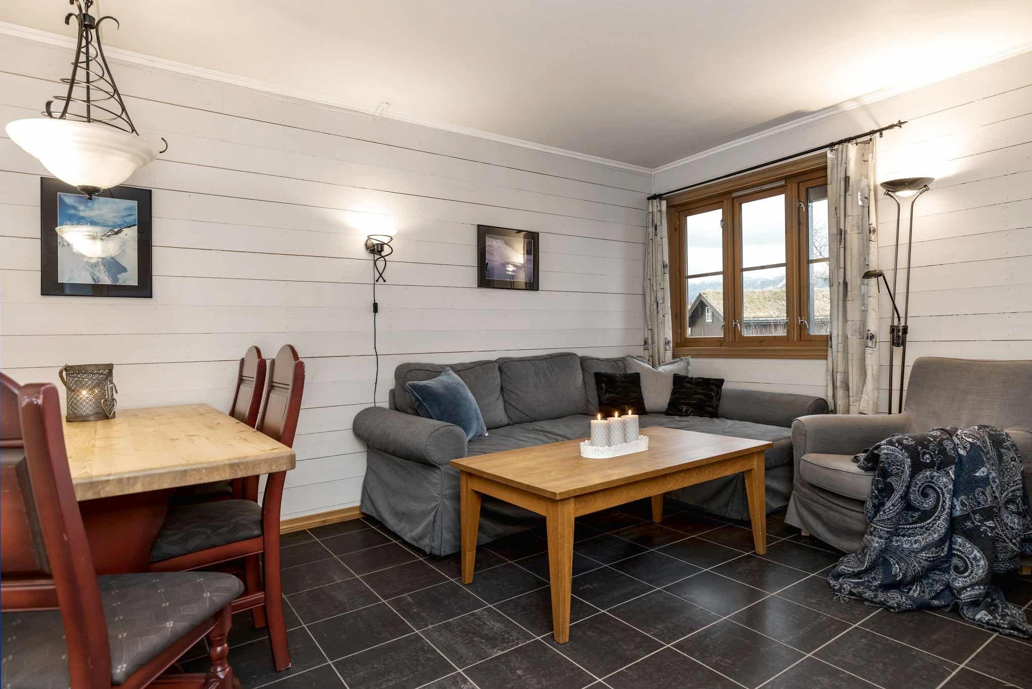 Skarsnuten Fjellandsby - Hytteområdet helt til tops. Midt i mellem Hemsdalsfjeldende ligger Skarsnuten Fjellandsby 1.000 m.o.h. med en fantastisk udsigt over dalen og skicenteret. Området er kuperet, adgang til lejligheden kan derfor variere alt efter terrænet.