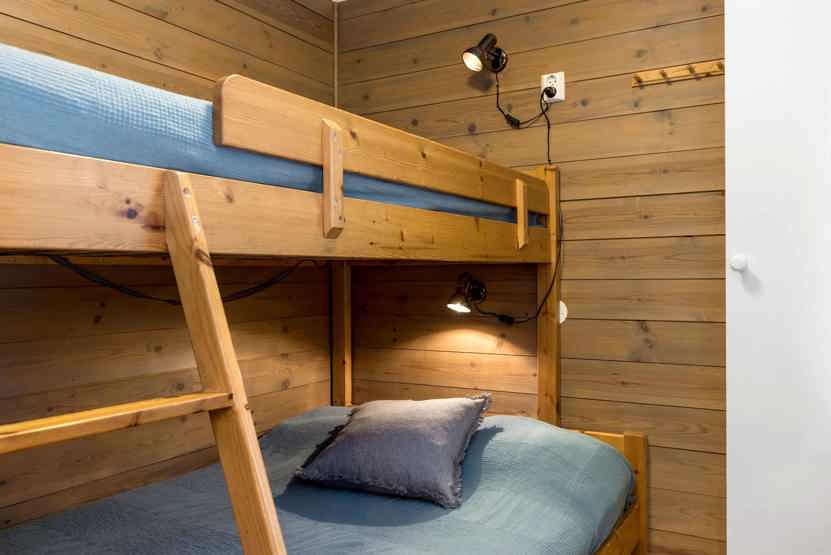 Soveværelse-1= 1 dobbeltseng. Soveværelse-2= 1 køjeseng med 120 cm bred underkøje.