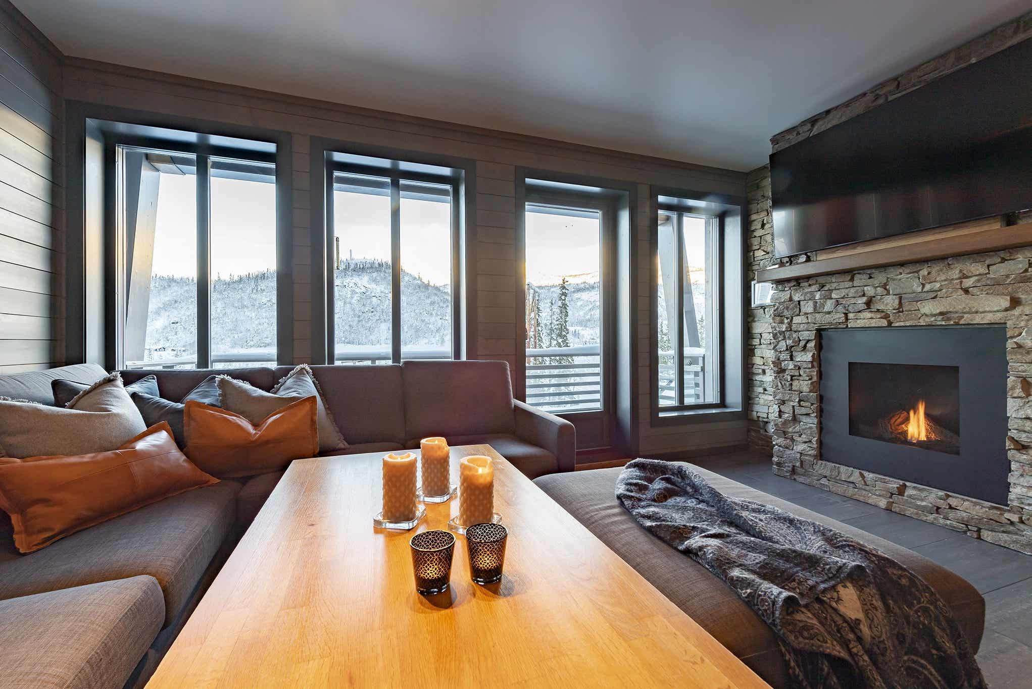 Skistar Lodge Hemsedal. Lækre lejligheder, velegnet til familien. Den bedste beliggenhed ved det store børneområde i Hemsedal Skisenter. Her bor man med ski in / ski out.. Lejlighederne er moderne og veludstyret med masser af komfort for den lille famiilie der ønsker 4 senge til 10 senge til store familie eller vennegrupper. SkiStar Lodge Hemsedal består af to bygninger, der er bygget sammen med en gangbro, så du hurtigt og nemt kan komme mellem dem og dermed har alle faciliteter inden for gåafstand, uanset hvor du bor. I SkiStar Lodge Hemsedal er der et klatrecenter, restauranter, lodgebar, café, sportsbutik, skiudlejning, skiopbevaring og supermarked.