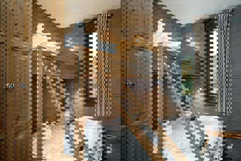 Soveværelse-1= 1 dobbeltseng. Soveværelse-2= 1 køjeseng med 150 cm bred underkøje. Soveværelse-3= 1 køjeseng med 150 cm bred underkøje.