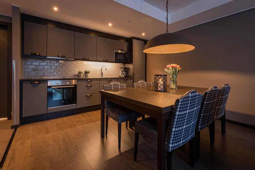 8 personers lejlighed, moderne og med stilfuld indretning. Lejlighed på 3 sal, 70 m². 3 soveværelser. Opholdsstue med TV og fuldt udstyret køkkenafdeling. 1 bruser, 2 WC. Varmeskab, Skiskab med skotørrer findes tæt i huset. Adgang til elbilopladere med type 2 stik mod betaling.