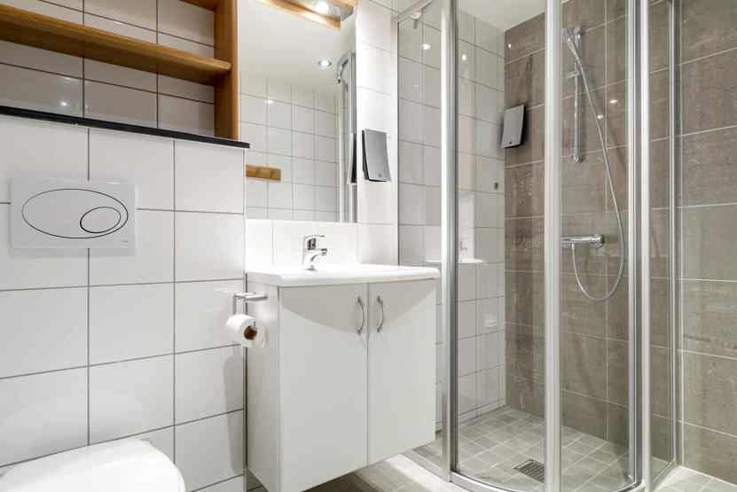Bad 1: WC, bruser, sauna. Bad 2: WC, bruser. Bad 3: WC, bruser.