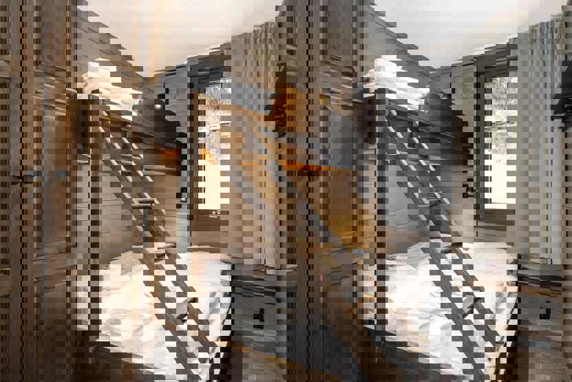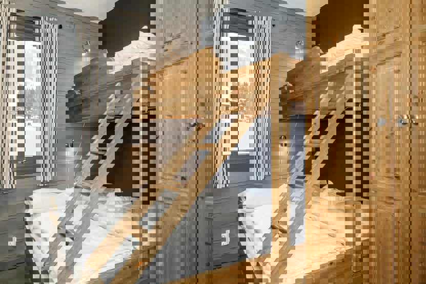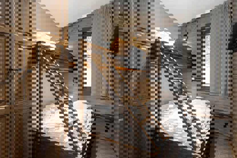 Soveværelse-1= 1 dobbeltseng. Soveværelse-2= 1 køjeseng med 150 cm bred underkøje. Soveværelse-3= 1 køjeseng med 150 cm bred underkøje.