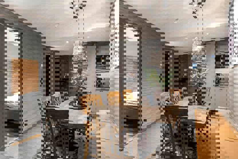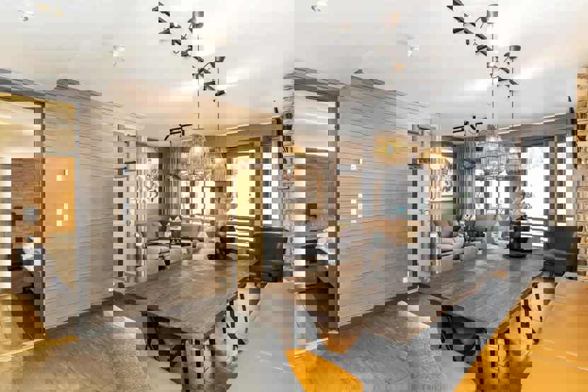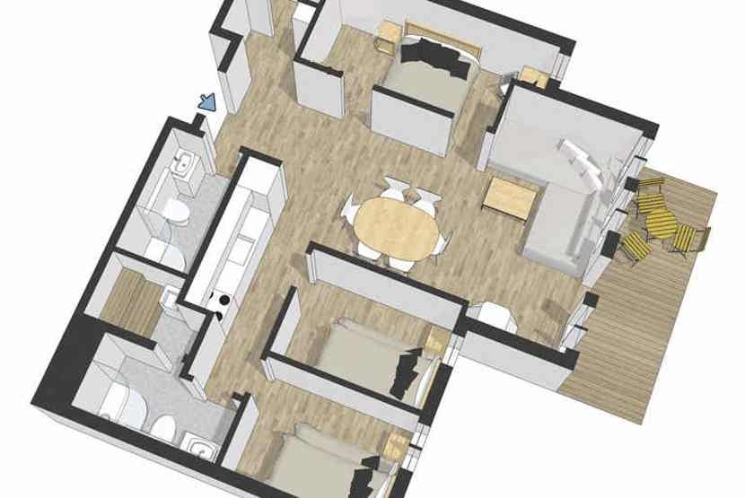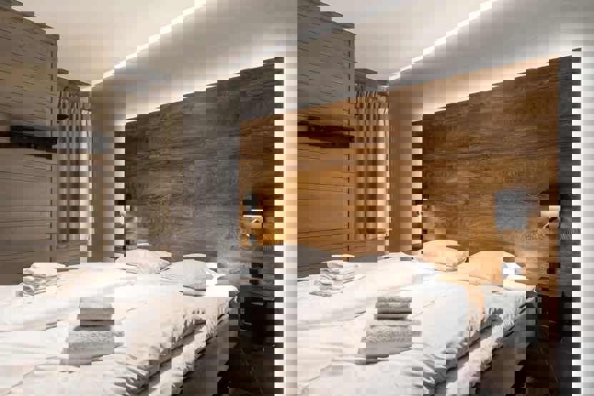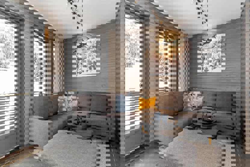 8 personers lejlighed, moderne og med stilfuld indretning. Lejlighed på 1 sal, 67 m². 3 soveværelser. Opholdsstue med TV, gaspejs og fuldt udstyret køkkenafdeling. 2 brusere, 2 WC, 1 sauna. Varmeskab, Skiskab findes tæt på receptionen. Adgang til elbilopladere med type 2 stik mod betaling.