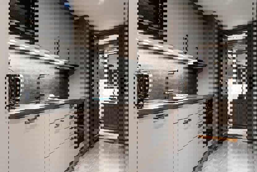 Køkkenet indeholder bl.a. opvaskemaskine, mikro, komfur med ovn, køleskab m/fryser.