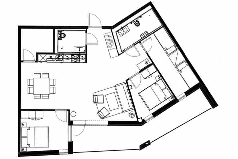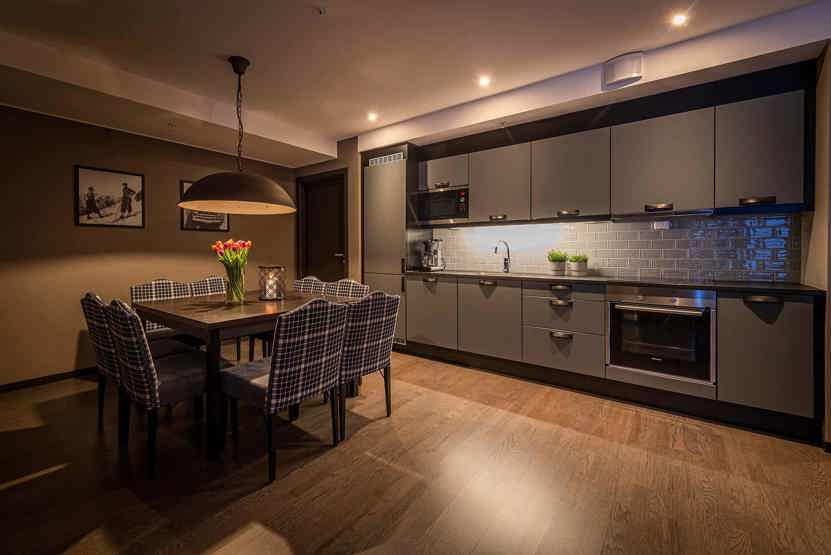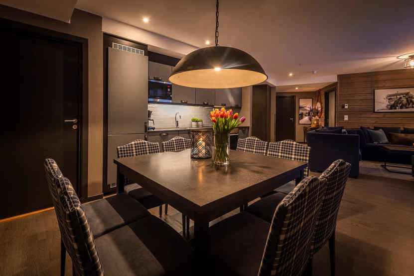 8 personers lejlighed, moderne og med stilfuld indretning. Lejlighed på 1 sal, 85 m². 3 soveværelser. Opholdsstue med TV og fuldt udstyret køkkenafdeling. 2 brusere, 2 WC. Varmeskab, Skiskab findes med skotørrer i huset. Adgang til elbilopladere med type 2 stik mod betaling.