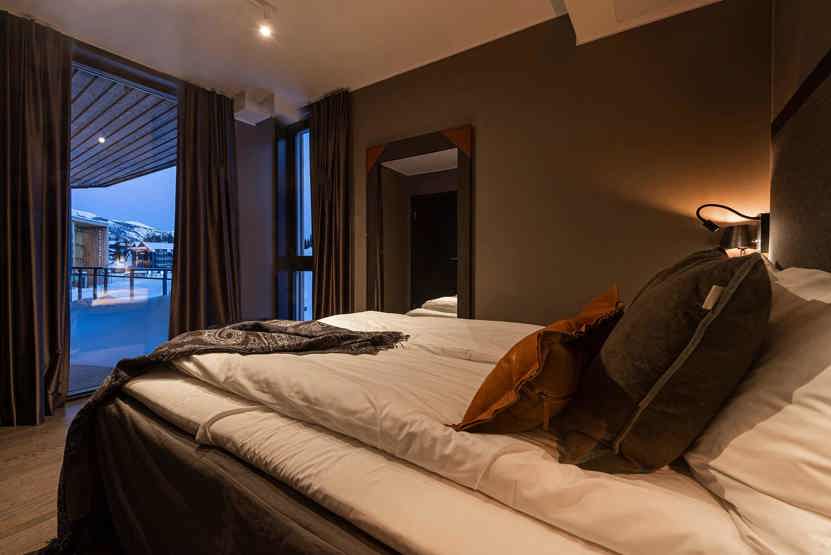 Skistar Lodge Mountain View 2114. Skøn udsigt over pisterne og store vinduer. Ligger med bedste beliggenhed, blot 50 m til børneområdet i Hemsedal Skisenter. Ski in / ski out. SkiStar Lodge Hemsedal består af 2 bygninger, som er forbundet via gangbro. Adgang til adskillige faciliteter som sportsbutik, skiudlejning og supermarked. I Hemsedal Lodge Suites er der skiopbevaring, restauranter med bar. Her vil grupper og familier trives.