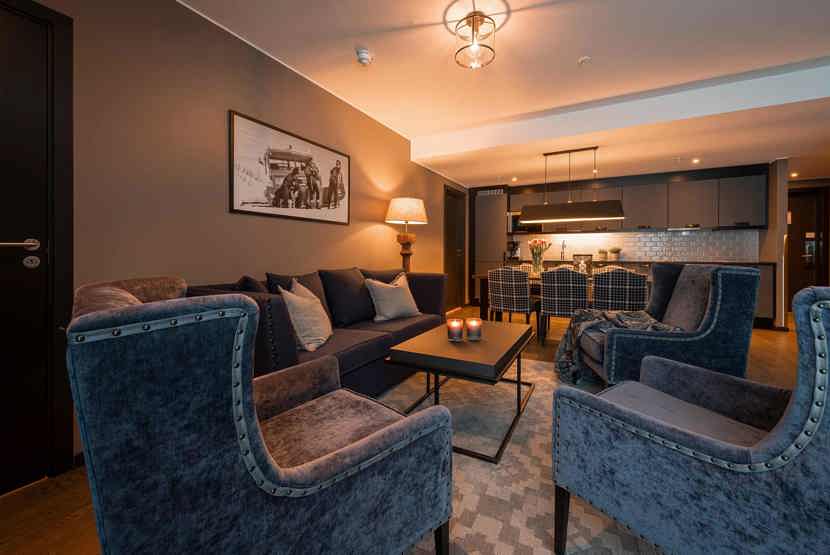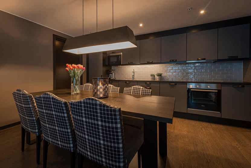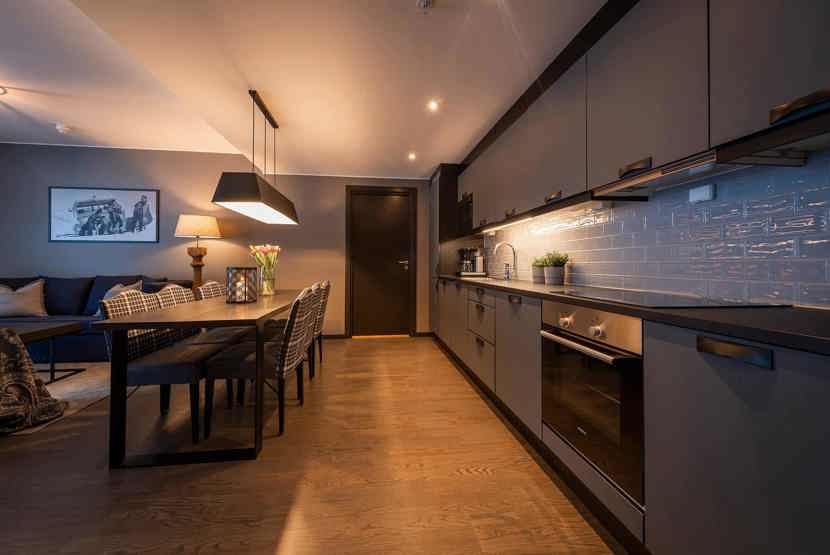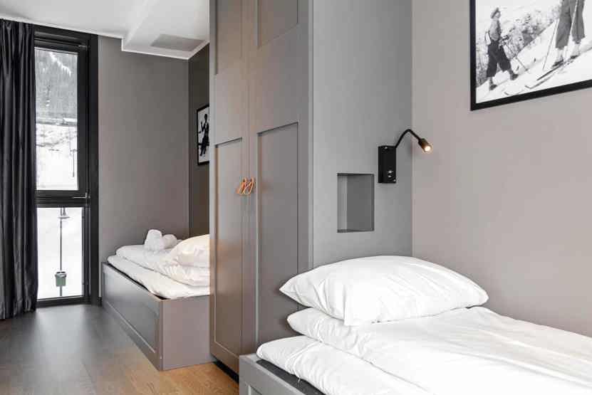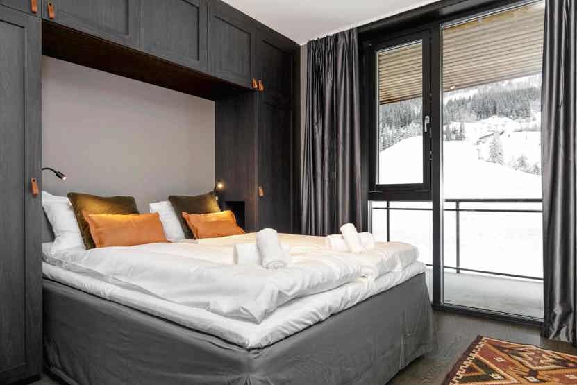 8 personers lejlighed, moderne og med stilfuld indretning. Lejlighed på 1 sal, 80 m². 3 soveværelser. Opholdsstue med TV og fuldt udstyret køkkenafdeling. 1 bruser, 2 WC. Varmeskab, Skiskab findes med skotørrer i huset. Adgang til elbilopladere med type 2 stik mod betaling.