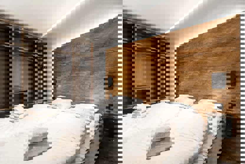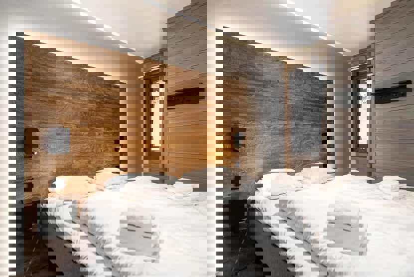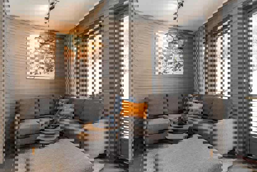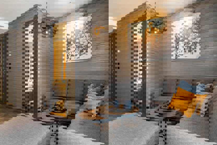 8 personers lejlighed, moderne og med stilfuld indretning. Lejlighed på 1 sal, 67 m². 3 soveværelser. Opholdsstue med TV, gaspejs og fuldt udstyret køkkenafdeling. 2 brusere, 2 WC, 1 sauna. Varmeskab, Skiskab findes tæt på receptionen. Adgang til elbilopladere med type 2 stik mod betaling.