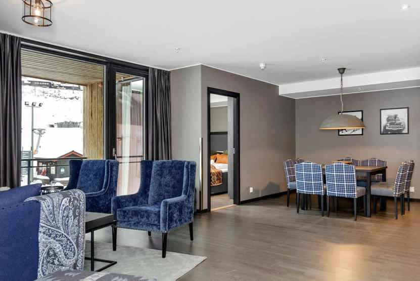 Skistar Lodge Mountain View 3114. Skøn udsigt over pisterne og store vinduer. Ligger med bedste beliggenhed, blot 50 m til børneområdet i Hemsedal Skisenter. Ski in / ski out. SkiStar Lodge Hemsedal består af 2 bygninger, som er forbundet via gangbro. Adgang til adskillige faciliteter som sportsbutik, skiudlejning og supermarked. I Hemsedal Lodge Suites er der skiopbevaring, restauranter med bar. Her vil grupper og familier trives.