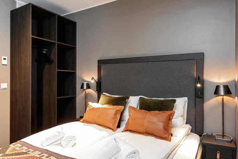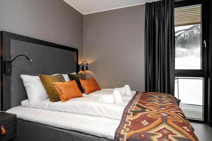 8 personers lejlighed, moderne og med stilfuld indretning. Lejlighed på 2 sal, 85 m². 3 soveværelser. Opholdsstue med TV og fuldt udstyret køkkenafdeling. 2 brusere, 2 WC. Varmeskab, Skiskab findes med skotørrer i huset. Adgang til elbilopladere med type 2 stik mod betaling.