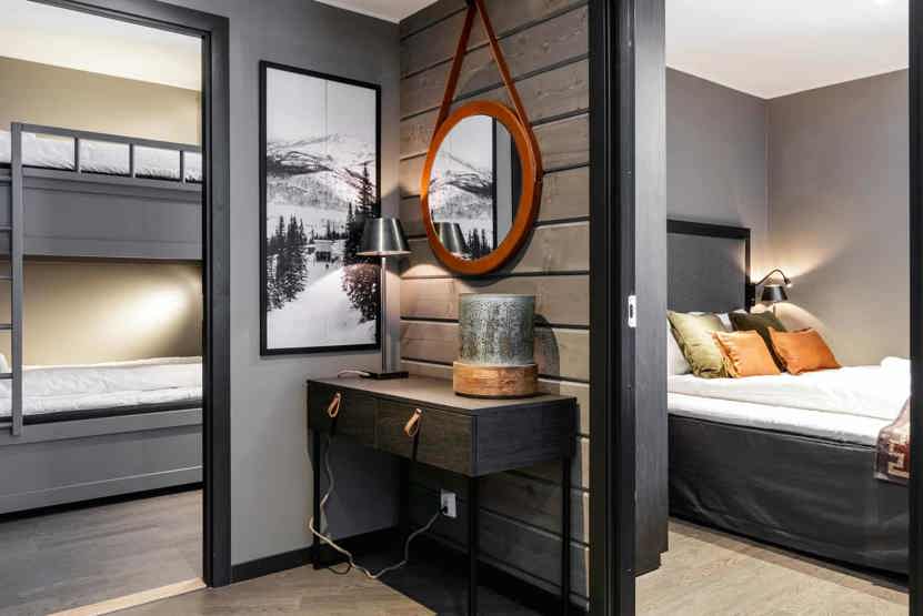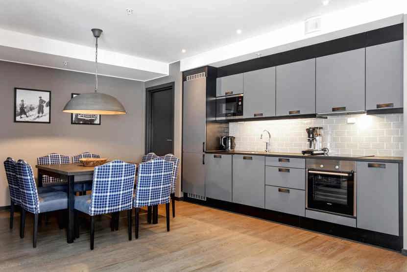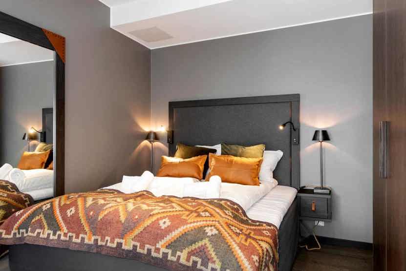 8 personers lejlighed, moderne og med stilfuld indretning. Lejlighed på 3 sal, 85 m². 3 soveværelser. Opholdsstue med TV og fuldt udstyret køkkenafdeling. 2 brusere, 2 WC. Varmeskab, Skiskab findes med skotørrer i huset. Adgang til elbilopladere med type 2 stik mod betaling.