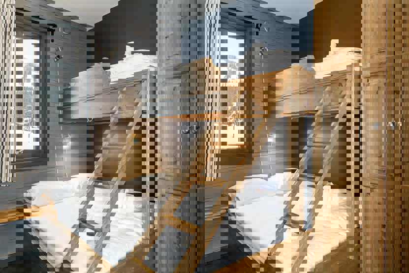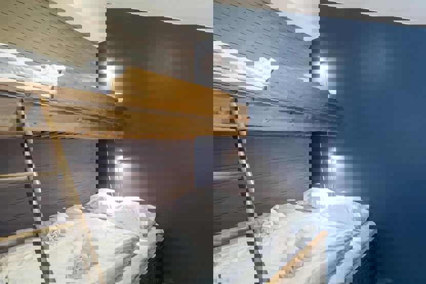 Soveværelse 1: 1 køjeseng med 150 cm bred underkøje. Soveværelse 2: køjeseng med 150 cm bred underkøje. Soveværelse 3: 1 dobbeltseng. Soveværelse 4: 1 dobbeltseng. Soveværelse 5: 1 køjeseng, 1 dobbeltseng.