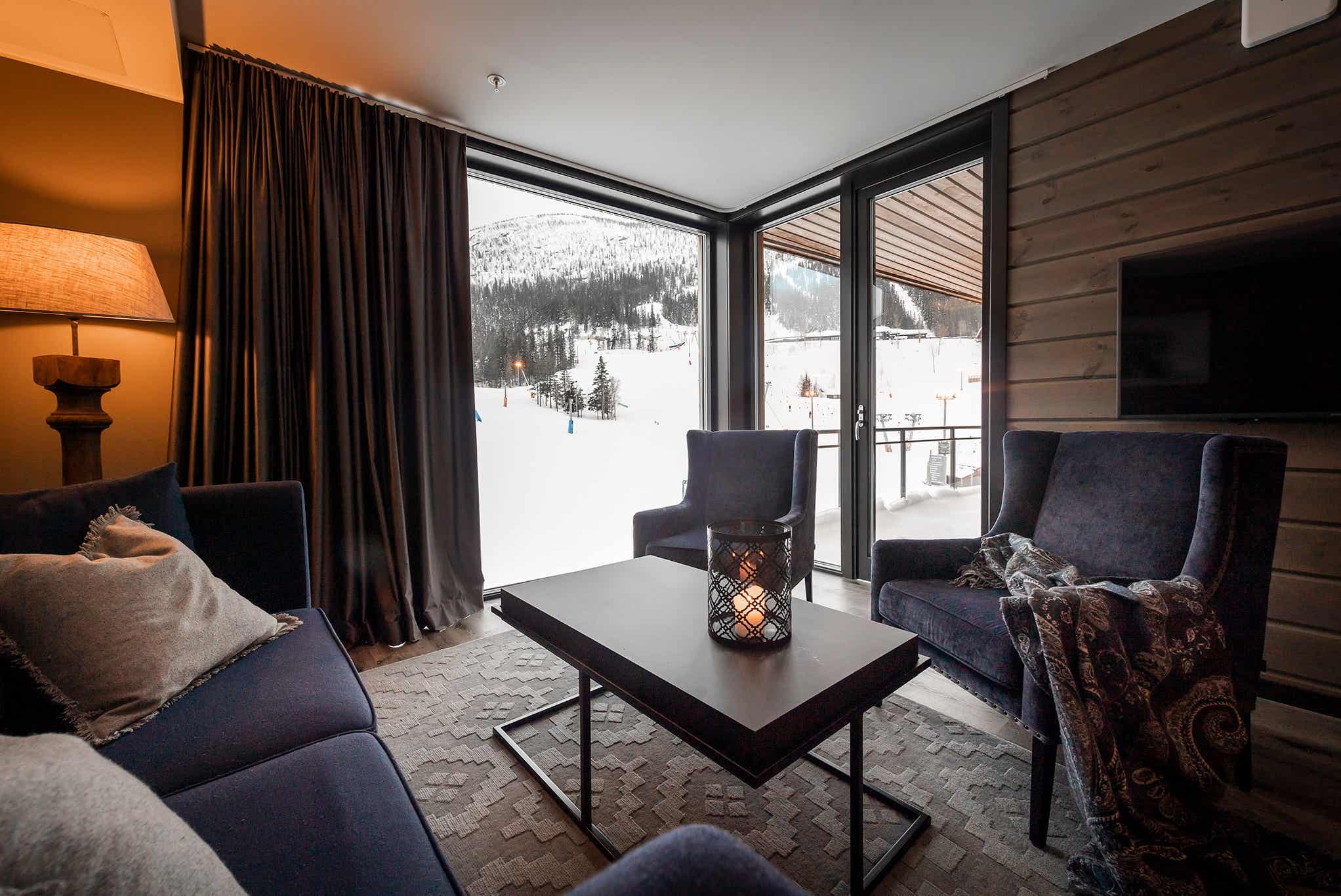 Skistar Lodge Hemsedal Mountain View. Lækre lejligheder velegnet til familien. Den bedste beliggenhed ved børneområdet i Hemsedal skisenter. Ski in / Ski out til Hemsedal Skisenter. Lejlighederne er moderne og veludrustet med masser af komfort og alle Mountain View. SkiStar Lodge Hemsedal består af to bygninger, forbundet via gangbro til Hemsedal Alpin Lodge. der sikre en hurtig og nem vej mellem alle faciliteter. I SkiStar Lodge Hemsedal er der et klatrecenter, restauranter, lodgebar, café, sportsbutik, skiudlejning, skiopbevaring og supermarked.