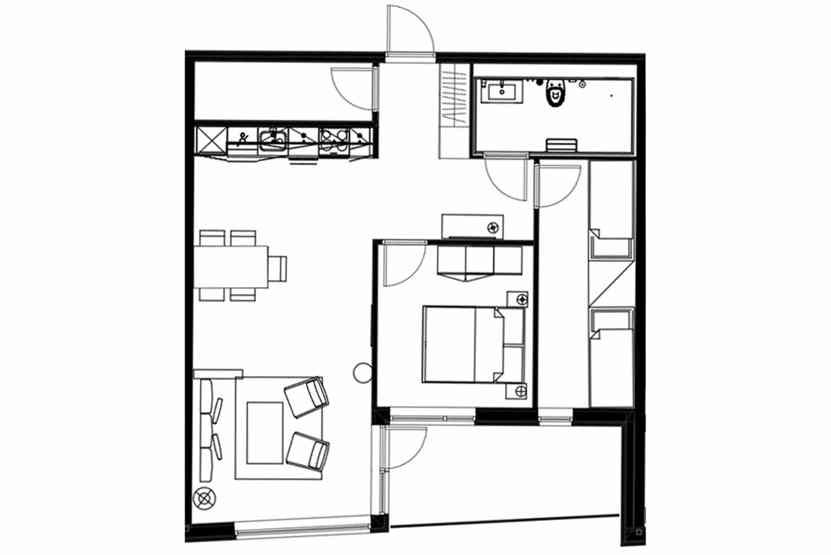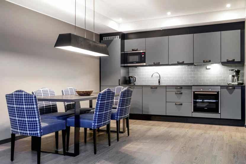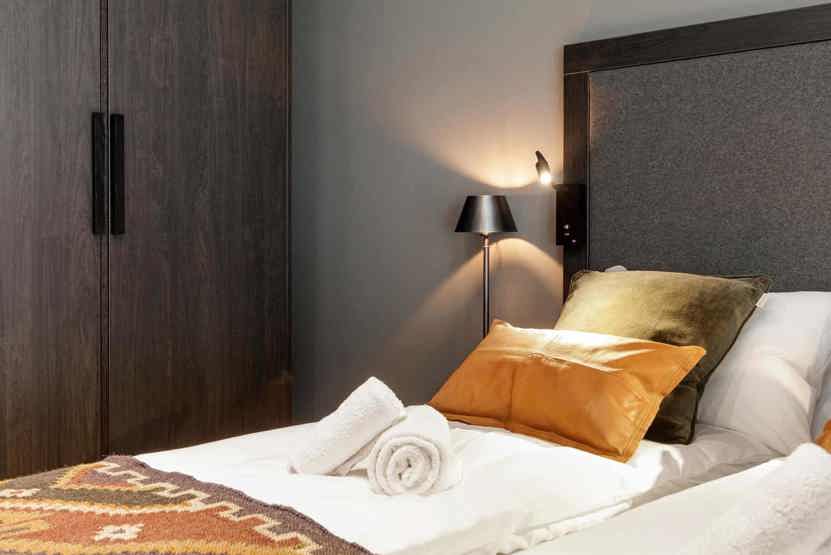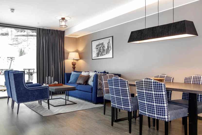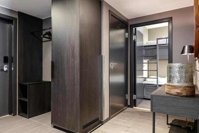 6 personers lejlighed, moderne og med stilfuld indretning. Lejlighed på 2 sal, 65 m². 2 soveværelser. Opholdsstue med TV og fuldt udstyret køkkenafdeling. 1 bruser, 1 WC. Varmeskab, Skiskab findes tæt på receptionen. Adgang til elbilopladere med type 2 stik mod betaling.