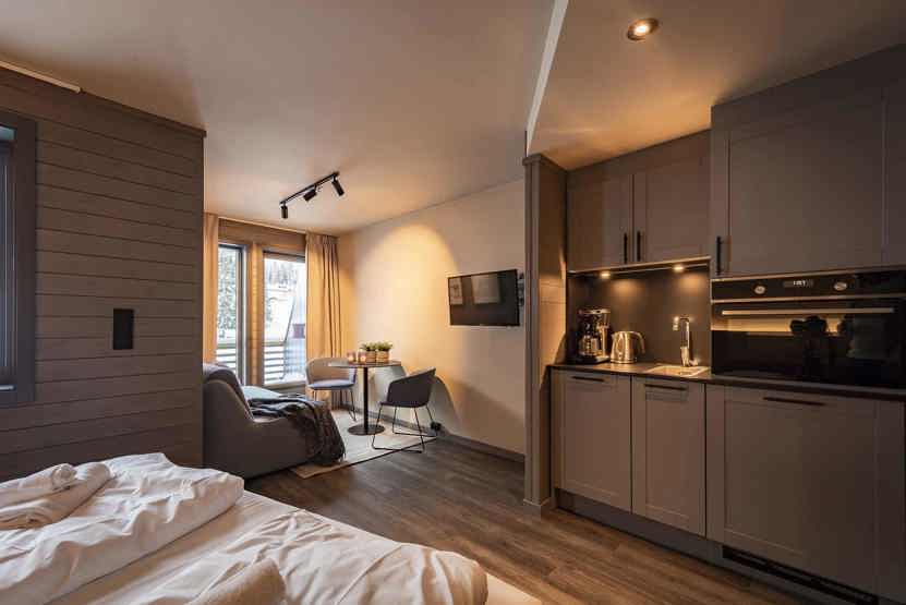 Skistar Lodge Studio 319 Mountain View er en moderne studio lejlighed med stilfuld indretning, på 2. sal.