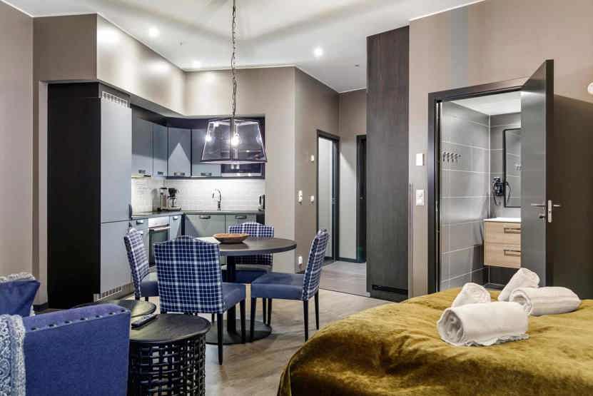 2 personers Studio lejlighed, moderne og med stilfuld indretning. Lejlighed på 2 sal, 43 m². 1 dobbeltseng. Opholdsstue med TV, sovesofa 1-2 børn og fuldt udstyret køkkenafdeling. 1 bruser, 1 WC. Varmeskab, Skiskab findes med skotørrer i huset. Adgang til elbilopladere med type 2 stik mod betaling.