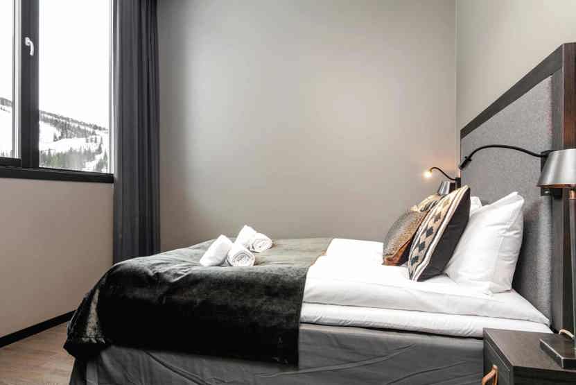 Skistar Lodge Suite 5203 Mountain View. Skøn udsigt over pisterne, store vinduer og højt til loftet. Ligger med bedste beliggenhed, blot 50 m til børneområdet i Hemsedal Skisenter. Ski in / ski out. SkiStar Lodge Hemsedal består af 2 bygninger, som er forbundet via gangbro. Adgang til adskillige faciliteter som sportsbutik, skiudlejning og supermarked. I Hemsedal Lodge Suites er der skiopbevaring, restauranter med bar. Her vil par og venner trives.