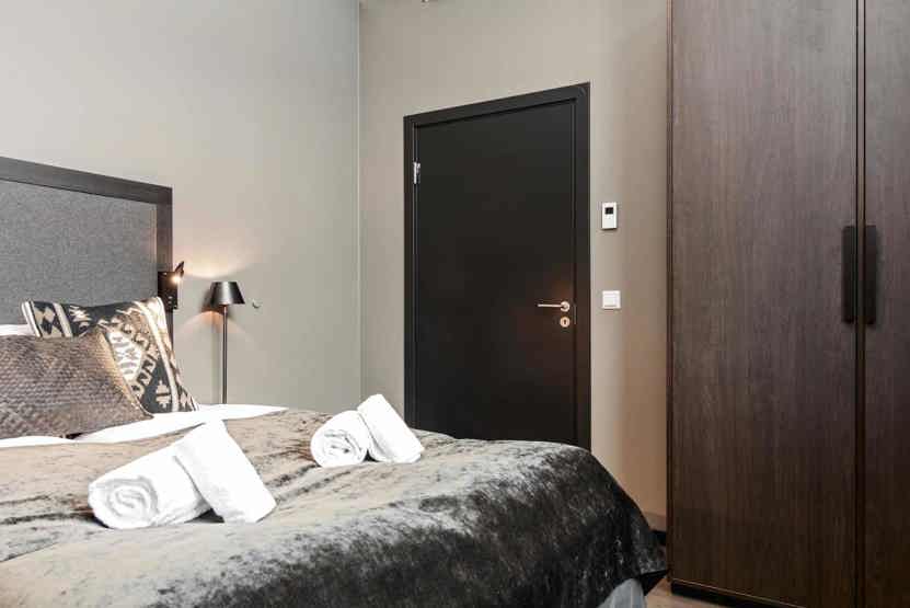 4 personers lejlighed, moderne og med stilfuld indretning. Lejlighed på 4 sal, 60 m². 2 soveværelser. Opholdsstue med TV, gaspejs, fuldt udstyret køkkenafdeling. 1 bruser, 1 WC. Varmeskab, Skiskab findes med skotørrer i huset. Adgang til elbilopladere med type 2 stik mod betaling.