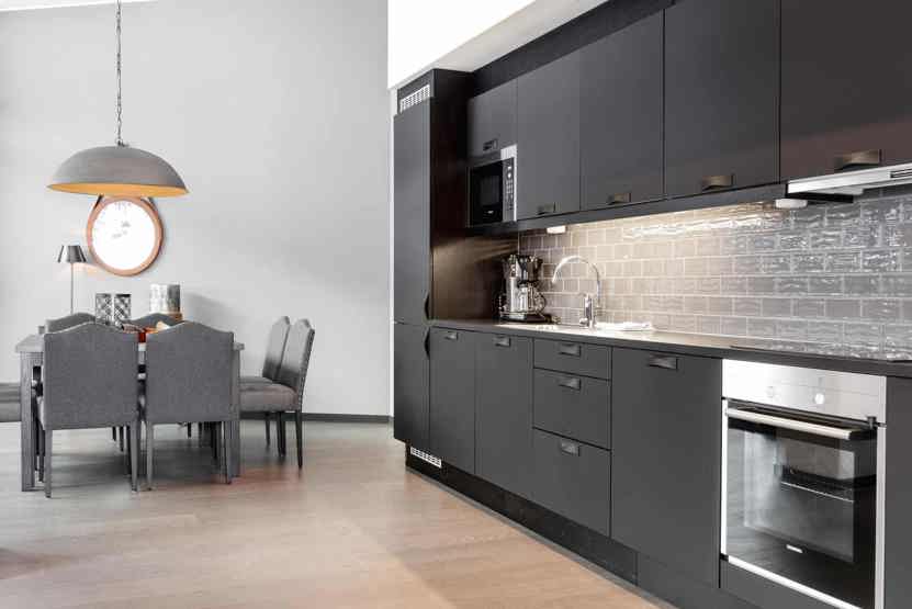 Køkkenet indeholder bl.a. komfur med ovn, køleskab, fryser, opvaskemaskine, mikro.