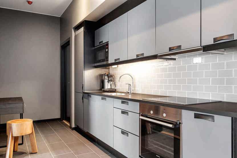 Køkkenet indeholder bl.a. komfur med ovn, køleskab, fryser, opvaskemaskine, mikro.