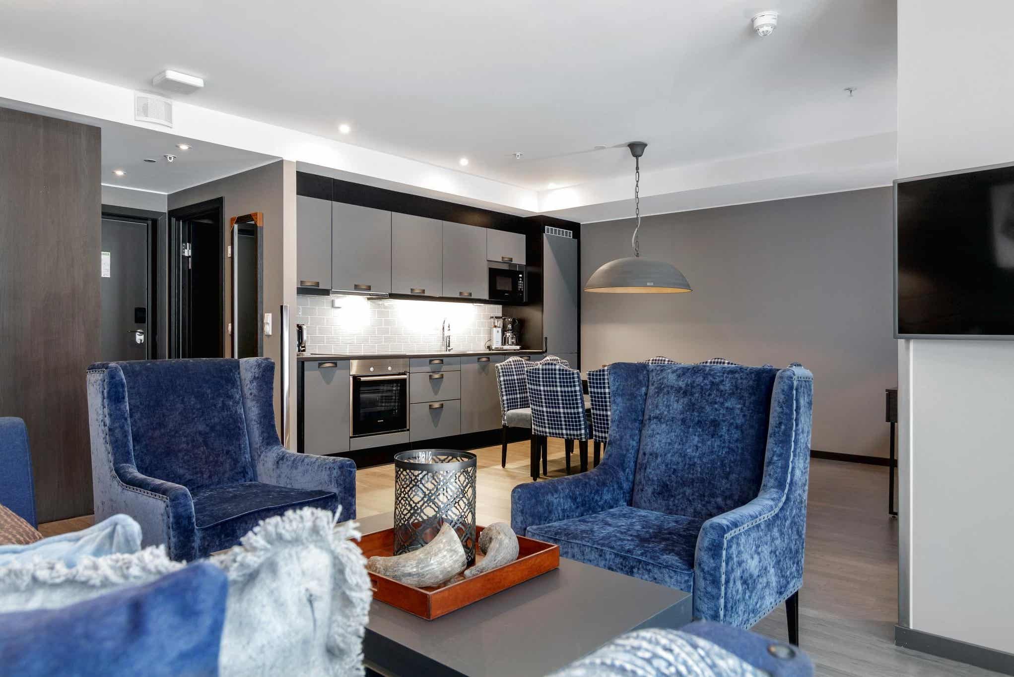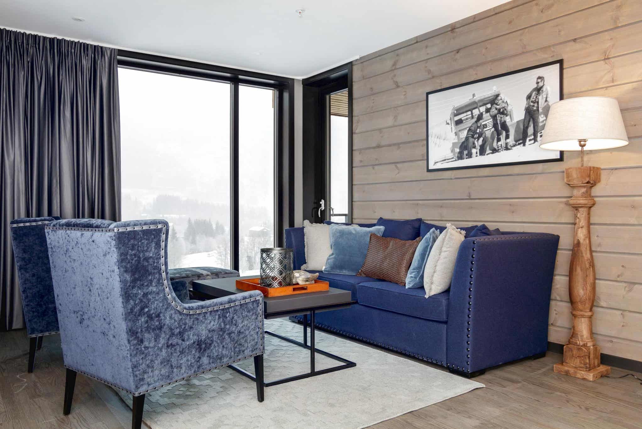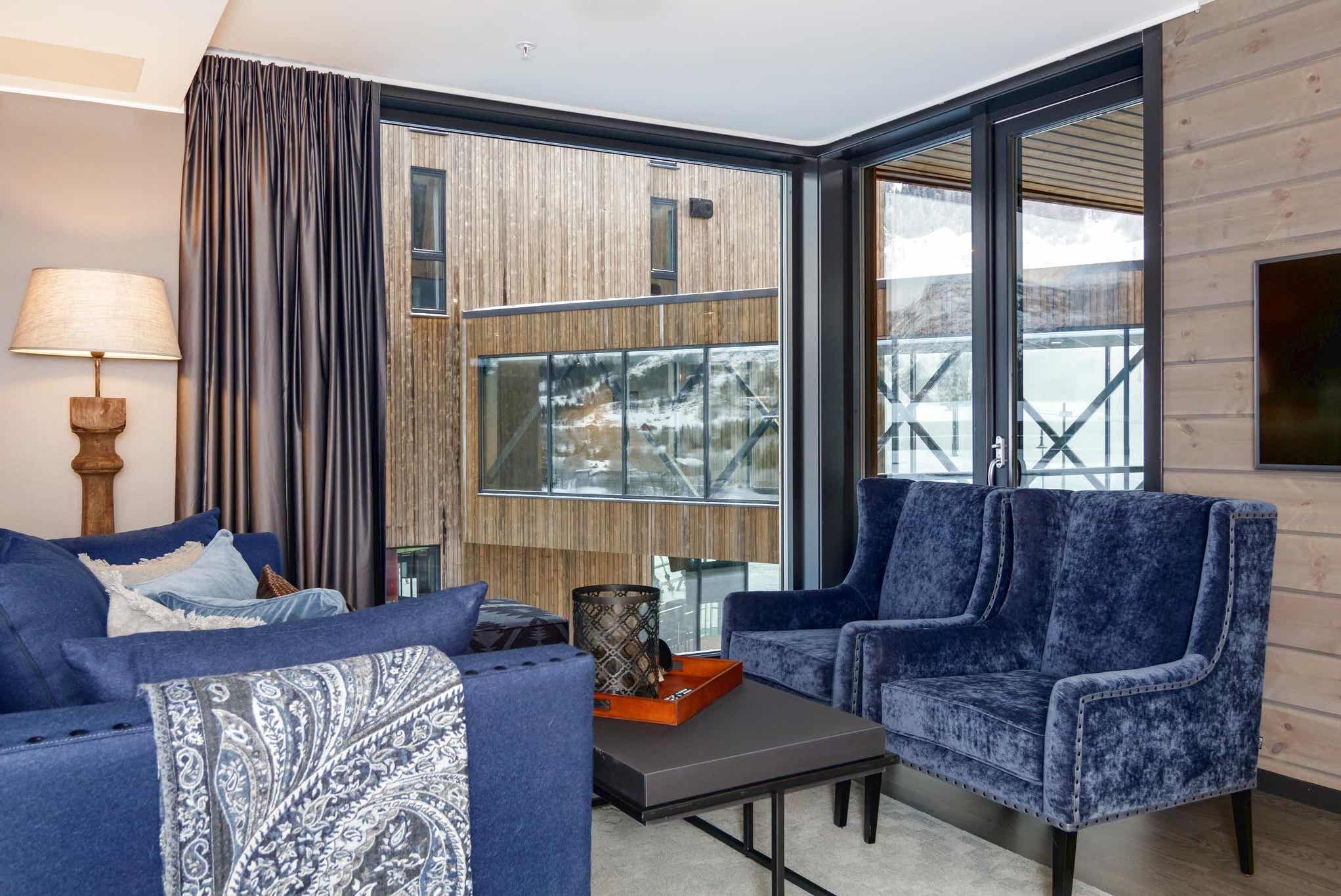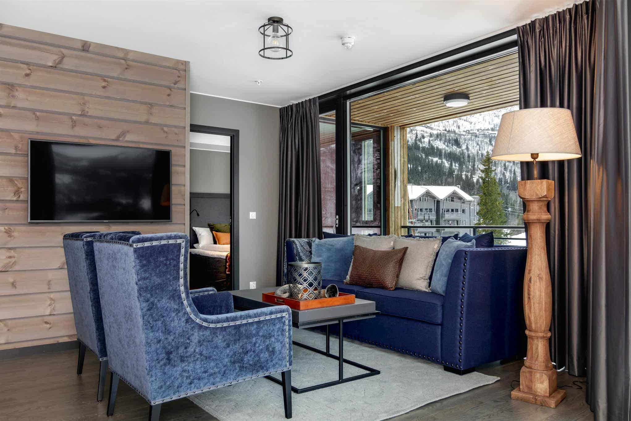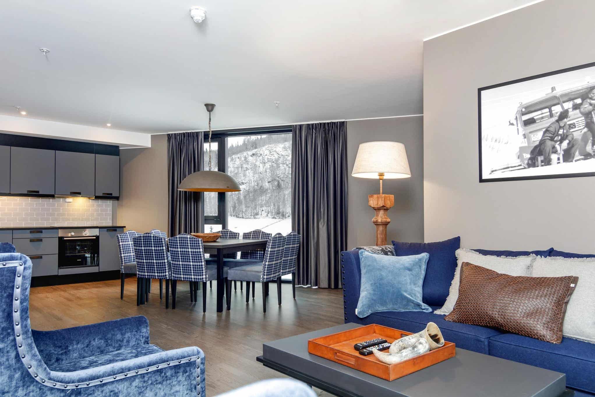 Skistar Lodge Hemsedal. Lækre lejligheder, velegnet til familien. Den bedste beliggenhed ved det store børneområde i Hemsedal Skisenter. Her bor man med ski in / ski out.. Lejlighederne er moderne og veludstyret med masser af komfort for den lille familie der ønsker 4 senge til 10 senge til store familie eller vennegrupper. SkiStar Lodge Hemsedal består af to bygninger, der er bygget sammen med en gangbro, så du hurtigt og nemt kan komme mellem dem og dermed har alle faciliteter inden for gåafstand, uanset hvor du bor. I SkiStar Lodge Hemsedal er der et klatrecenter, restauranter, lodgebar, café, sportsbutik, skiudlejning, skiopbevaring og supermarked.
