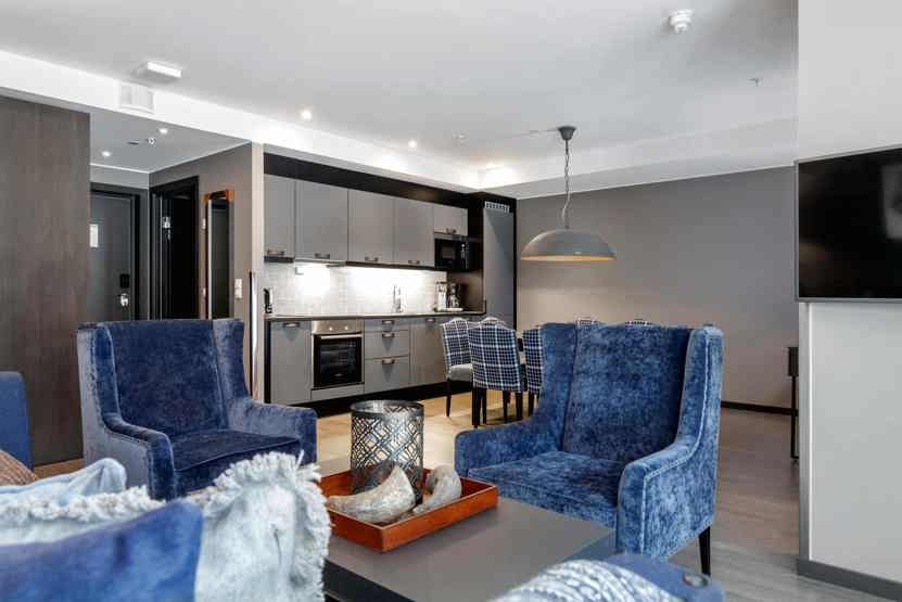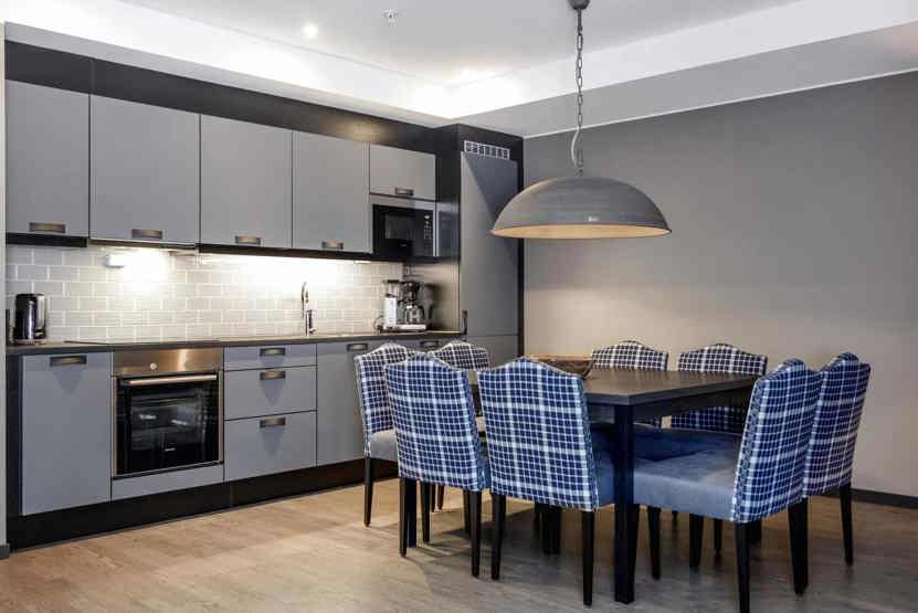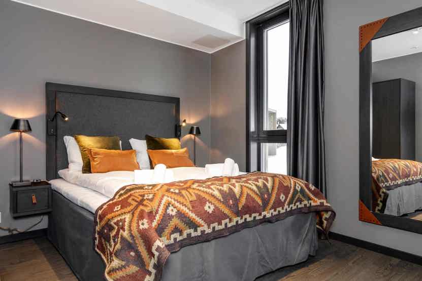 6 personers lejlighed, moderne og med stilfuld indretning. Lejlighed på 1 sal, 65 m². 2 soveværelser. Opholdsstue med TV og fuldt udstyret køkkenafdeling. 1 bruser, 1 WC. Varmeskab. Skiskab med skotørrer findes i huset. Adgang til elbilopladere med type 2 stik mod betaling.