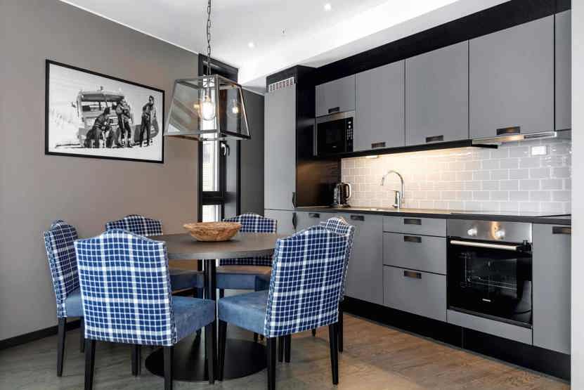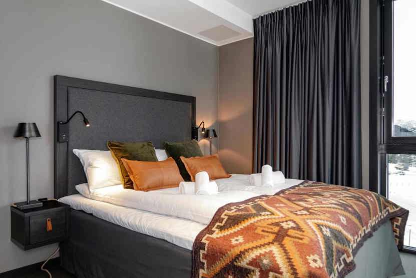 6 personers lejlighed, moderne og med stilfuld indretning. Lejlighed på 1 sal, 70 m². 2 soveværelser. Opholdsstue med TV og fuldt udstyret køkkenafdeling. 1 bruser, 1 WC. Varmeskab. Skiskab med skotørrer findes i huset. Adgang til elbilopladere med type 2 stik mod betaling.