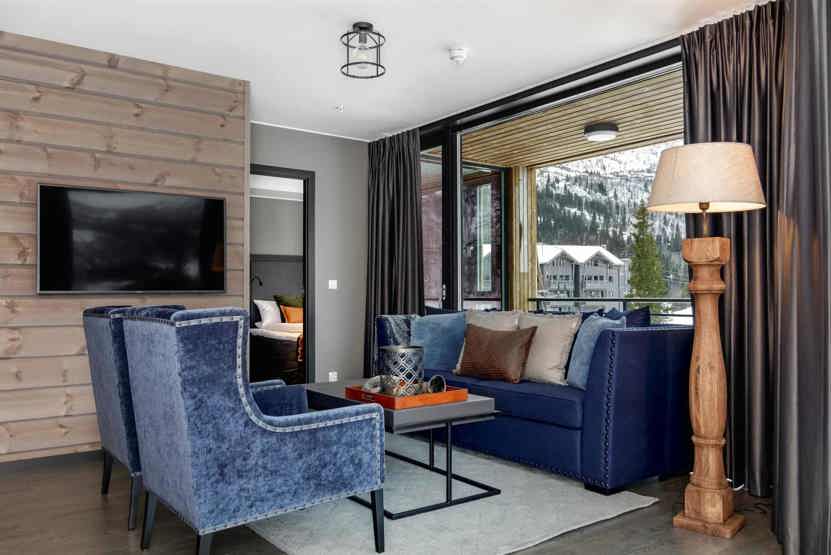 Skistar Lodge Suites 2105. Skøn udsigt over pisterne, store vinduer og højt til loftet. Ligger med bedste beliggenhed, lige ved børneområdet i Hemsedal Skisenter. Ski in / ski out. SkiStar Lodge Hemsedal består af 2 bygninger, som er forbundet via gangbro. Så nem adgang til adskillige faciliteter som sportsbutik, skiudlejning og supermarked. I Hemsedal Suites er der skiopbevaring, restauranter med bar. Her vil børnefamilier trives.