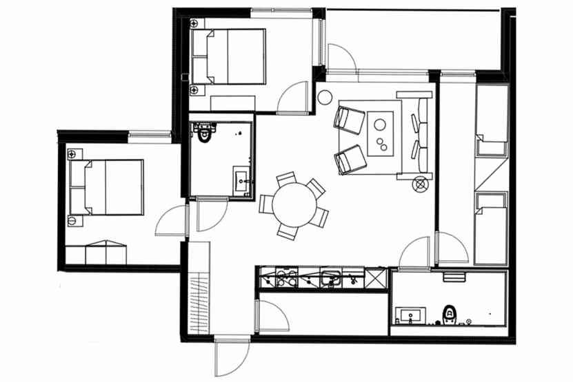 6 personers lejlighed, moderne og med stilfuld indretning. Lejlighed på 1 sal, 75 m². 3 soveværelser. Opholdsstue med TV og fuldt udstyret køkkenafdeling. 2 brusere, 2 WC. Varmeskab. Skiskab med skotørrer findes i huset. Adgang til elbilopladere med type 2 stik mod betaling.