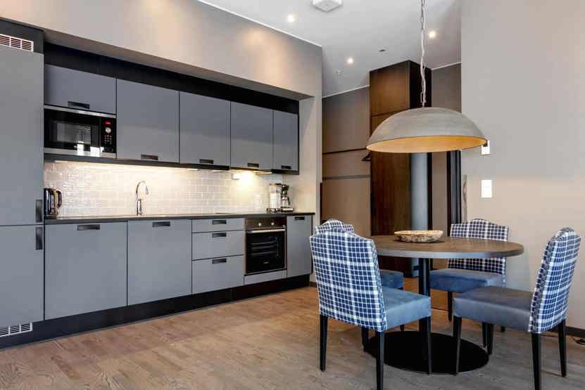Køkkenet indeholder bl.a. komfur med ovn, køleskab, fryser, opvaskemaskine, mikro.