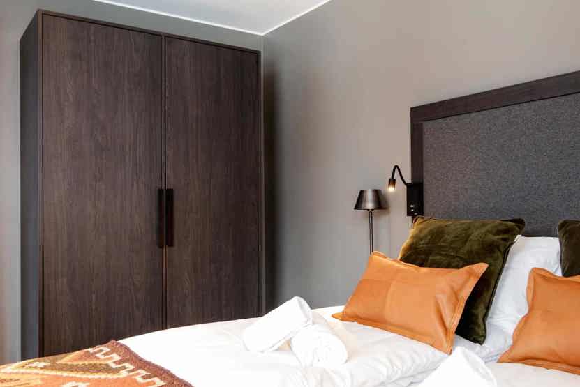 6 personers lejlighed, moderne og med stilfuld indretning. Lejlighed på 2 sal, 70 m². 2 soveværelser. Opholdsstue med TV og fuldt udstyret køkkenafdeling. 1 bruser, 1 WC. Varmeskab. Skiskab med skotørrer findes i huset. Adgang til elbilopladere med type 2 stik mod betaling.