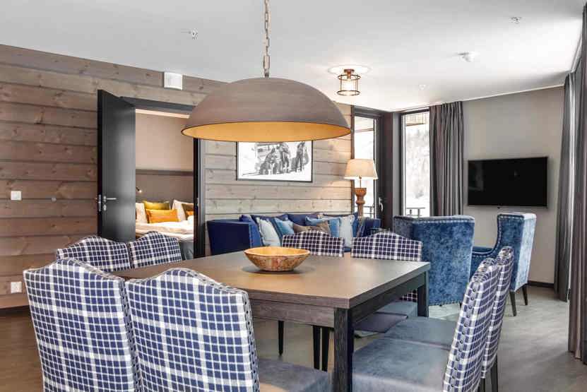 6 personers lejlighed, moderne og med stilfuld indretning. Lejlighed på 2 sal, 70 m². 2 soveværelser. Opholdsstue med TV og fuldt udstyret køkkenafdeling. 1 bruser, 1 WC. Varmeskab. Skiskab med skotørrer findes i huset. Adgang til elbilopladere med type 2 stik mod betaling.