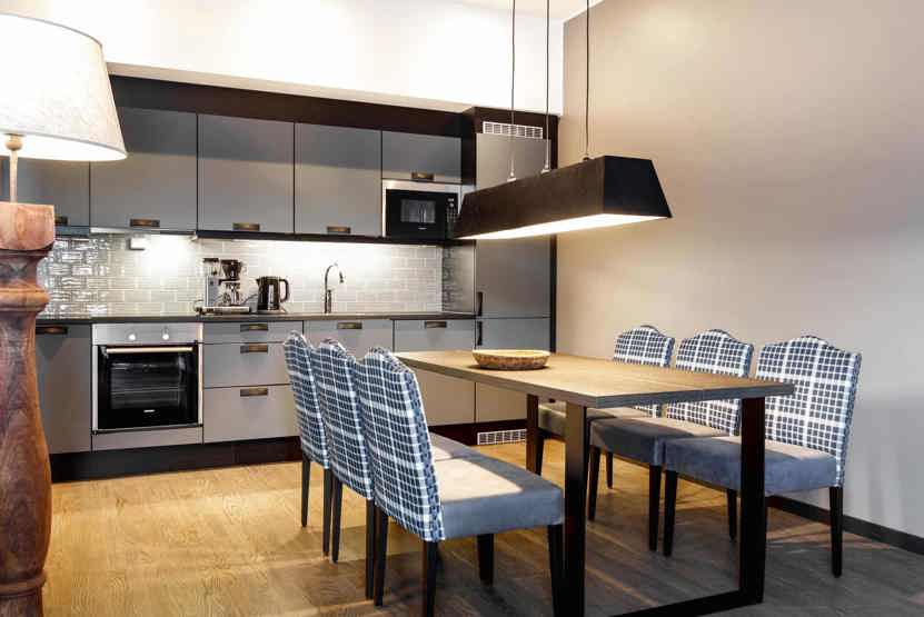 Køkkenet indeholder bl.a. komfur med ovn, køleskab, fryser, opvaskemaskine, mikro.