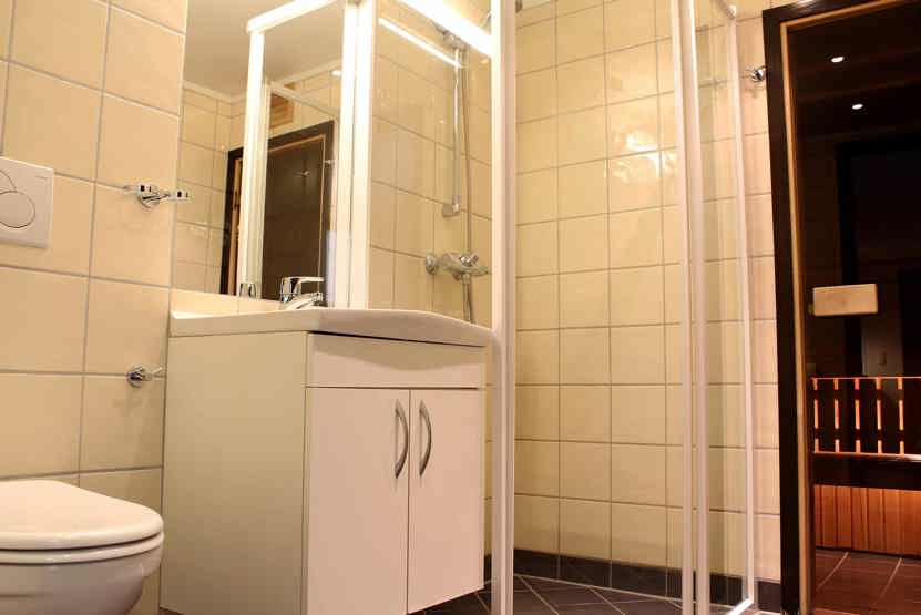 Badeværelser: Bad 1: Bruser, WC, sauna.