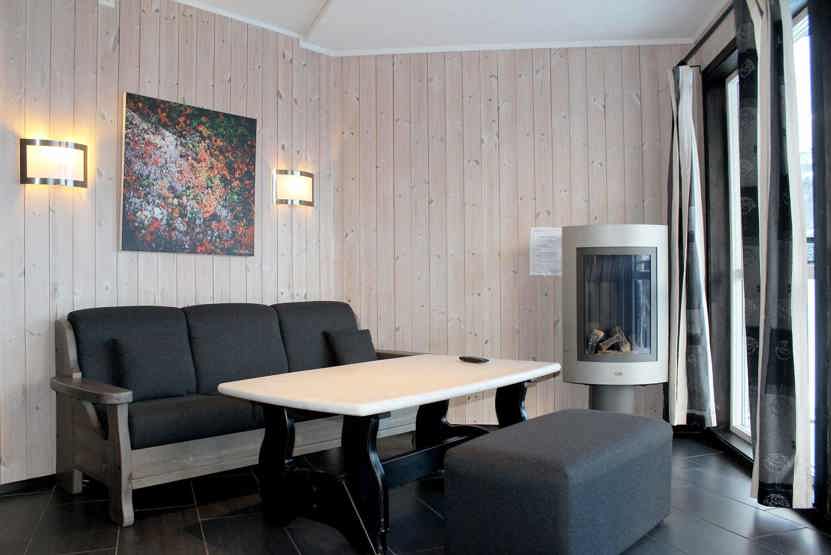 6 personers lejlighed, i stueetagen, 51 m². 2 soveværelser Opholdsstue med gaspejs, TV og fuldt udstyret køkkenafdeling. 1 bruser, 1 WC, 1 sauna. Skiopbevaring.