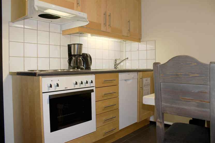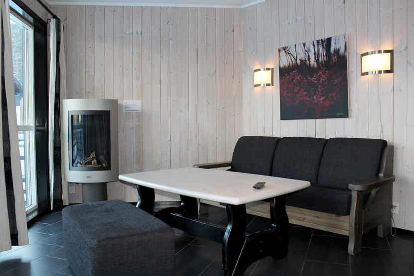 6 personers lejlighed, 51 m². 2 soveværelser Opholdsstue med gaspejs, TV og fuldt udstyret køkkenafdeling. 1 bruser, 1 WC, 1 sauna. Skiopbevaring.