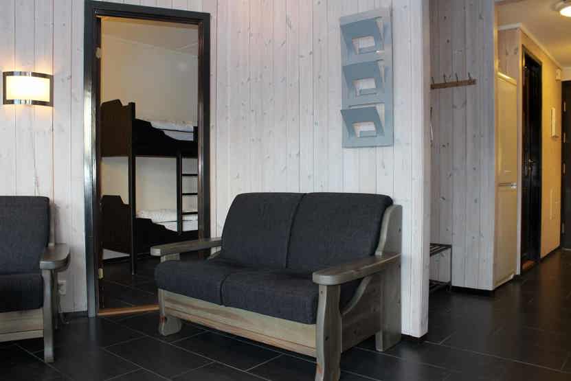 6 personers lejlighed, 51 m². 1. sal, 2 soveværelser Opholdsstue med gaspejs, TV og fuldt udstyret køkkenafdeling. 1 bruser, 1 WC, 1 sauna. Skiopbevaring.