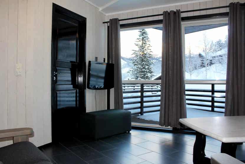 6 personers lejlighed, 51 m². 2 soveværelser Opholdsstue med gaspejs, TV og fuldt udstyret køkkenafdeling. 1 bruser, 1 WC, 1 sauna. Skiopbevaring.