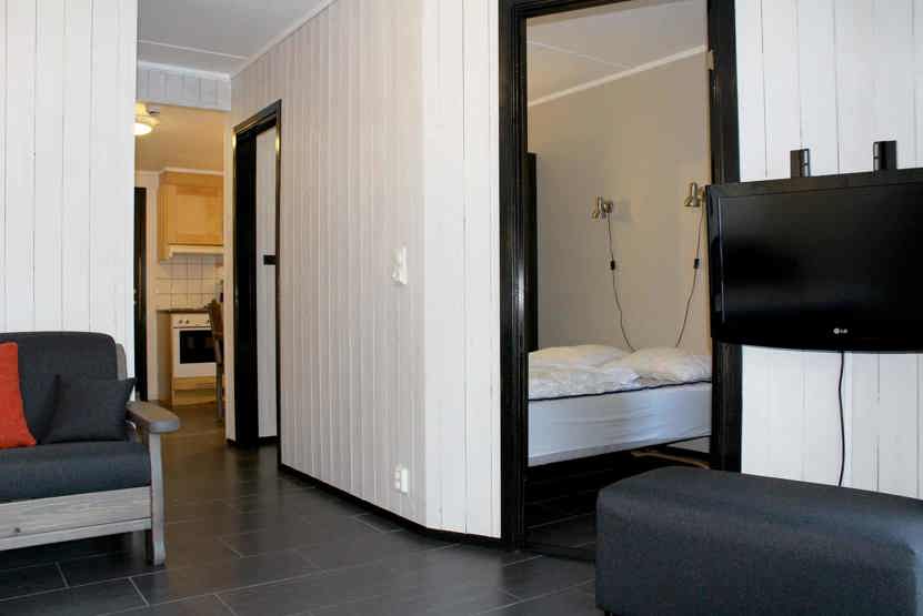 6 personers lejlighed, 51 m². 2 soveværelser Opholdsstue med gaspejs, TV og fuldt udstyret køkkenafdeling. 1 bruser, 1 WC, 1 sauna. Skiopbevaring.