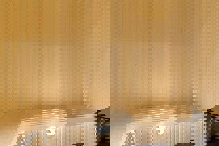 Badeværelser: Bad 1: Bruser, WC, sauna.