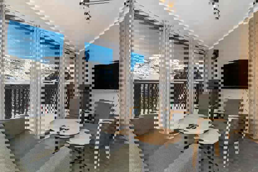 Ekstra info: TV, gaspejs. Balkon (der skovles ikke sne), Elevator findes i huset. Skiopbevaring, Parkering i garage mod betaling (der er adgang til gratis udendørs parkering), adgang til fælles elbilopladere med type 2 stik mod betaling.