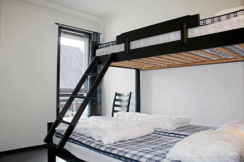 Soveværelse 1: 1 dobbeltseng. Soveværelse 3: 1 køjeseng med 150 cm bred underkøje. Soveværelse 3: 2 køjesenge.