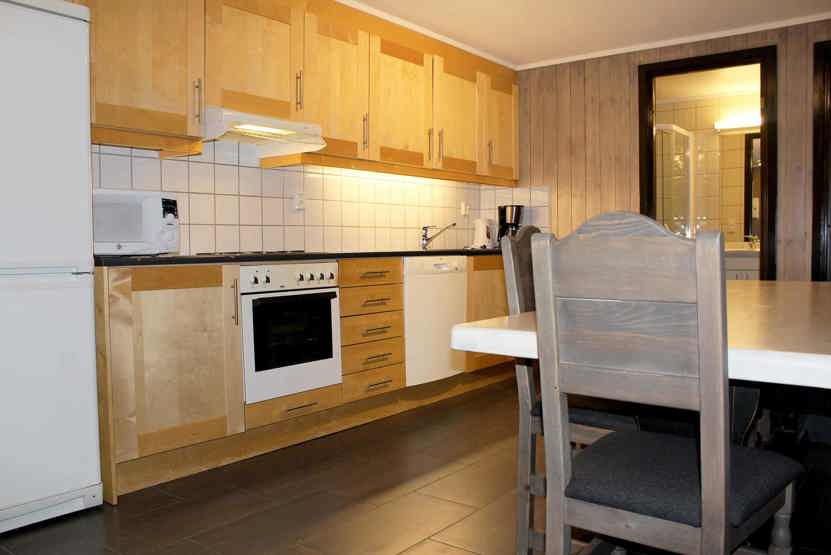 Køkken: Køkkenet indeholder bl.a: komfur, ovn, køleskab m/fryser, opvaskemaskine, mikro