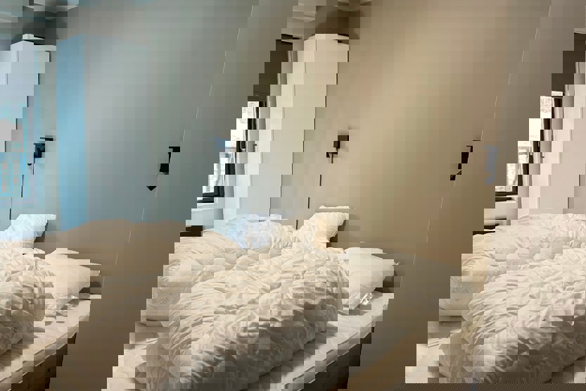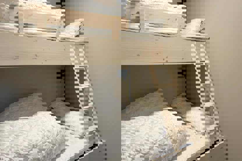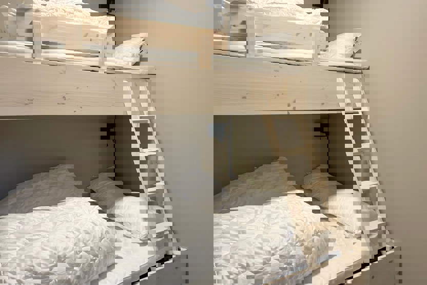 Soveværelse-1= 1 dobbeltseng 180 cm bred. Soveværelse-2= 1 køjeseng med 140 cm bred underkøje.