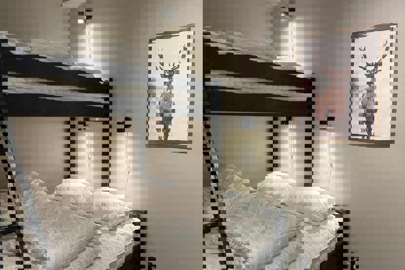 Soveværelse-1= 1 dobbeltseng. Soveværelse-2= 1 køjeseng med 150 cm bred underkøje.